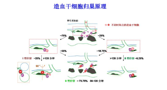 研究人員在國際上率先采用可變色熒光蛋白建立了造血干細(xì)胞標(biāo)記系統(tǒng),在高分辨率共聚焦熒光顯微鏡下,建立了造血干細(xì)胞長時程活體觀察追蹤方案,從宏觀到微觀,生動地呈現(xiàn)了造血干細(xì)胞從誕生到歸巢的全過程。經(jīng)過對大規(guī)模長時程活體成像的統(tǒng)計(jì)分析,發(fā)現(xiàn)了造血干細(xì)胞歸巢的時空規(guī)律及“熱點(diǎn)區(qū)域”,并結(jié)合精細(xì)成像和三維重構(gòu)技術(shù),首次揭示了體內(nèi)造血干細(xì)胞歸巢微環(huán)境的獨(dú)特微血管結(jié)構(gòu)。